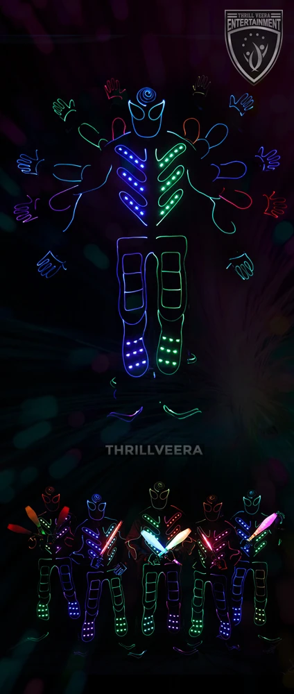 Step into a world of brilliance and innovation with our LED light performances at ThrillVeera Entertainment. Each show is a seamless blend of breathtaking visuals and high-energy creativity, designed to dazzle and captivate your audience. From vibrant color displays to intricate light choreography, our LED light shows transform your event into an unforgettable visual masterpiece that leaves everyone talking long after the final glow fades.